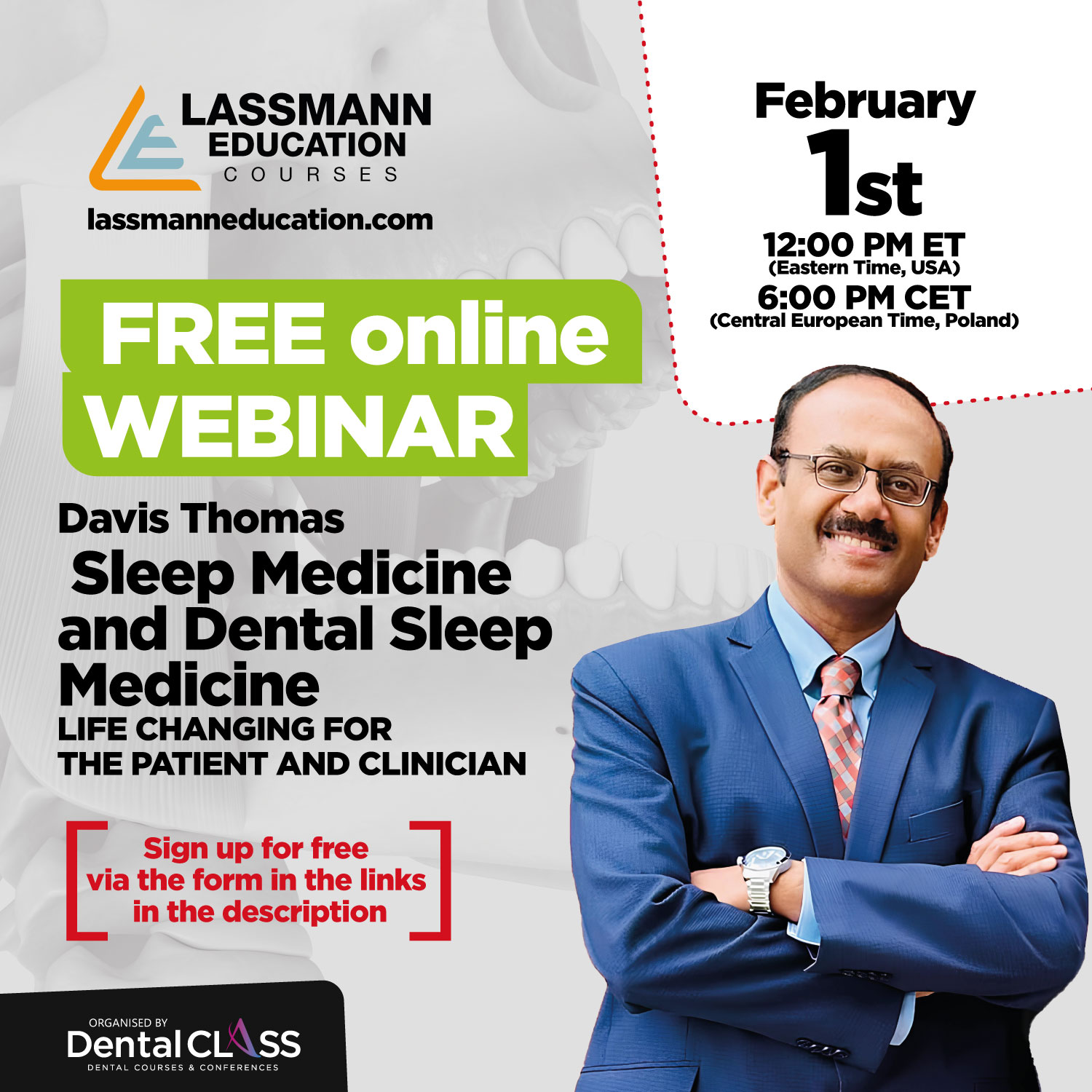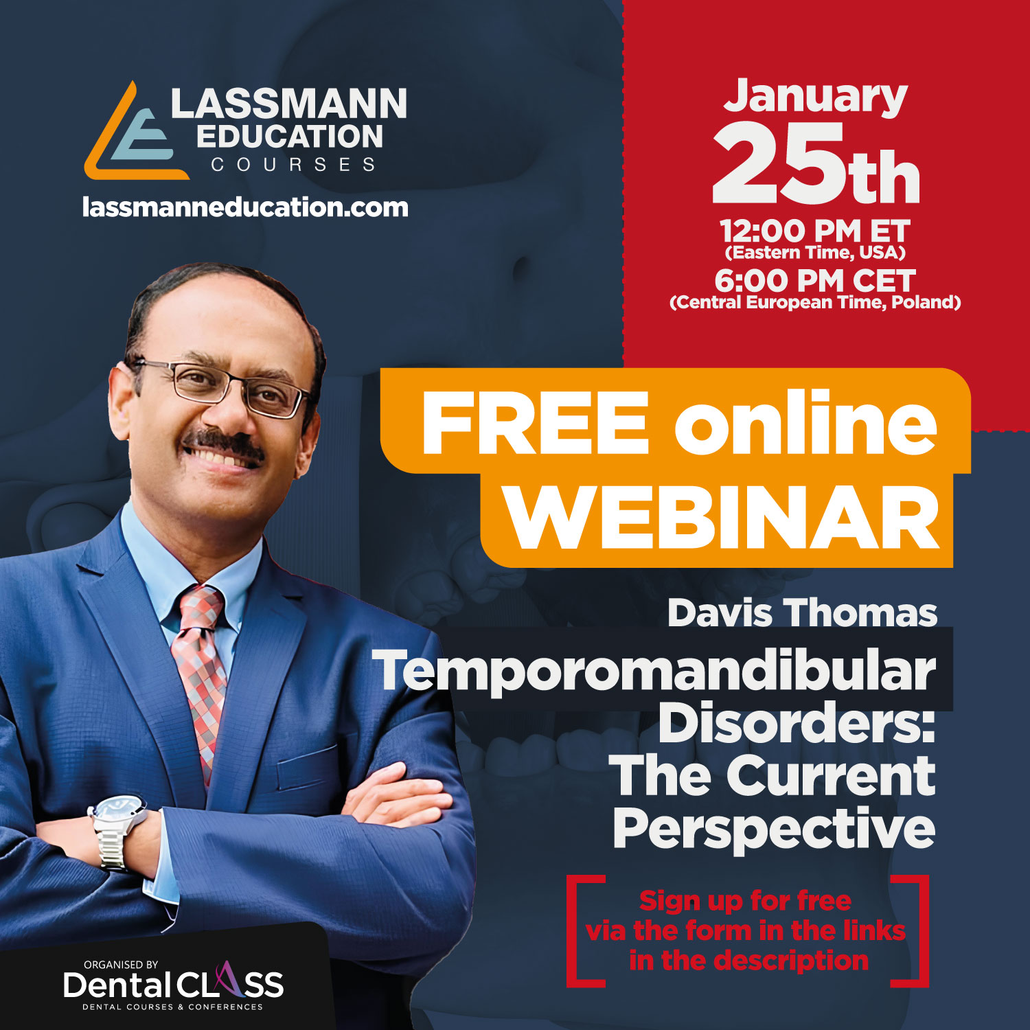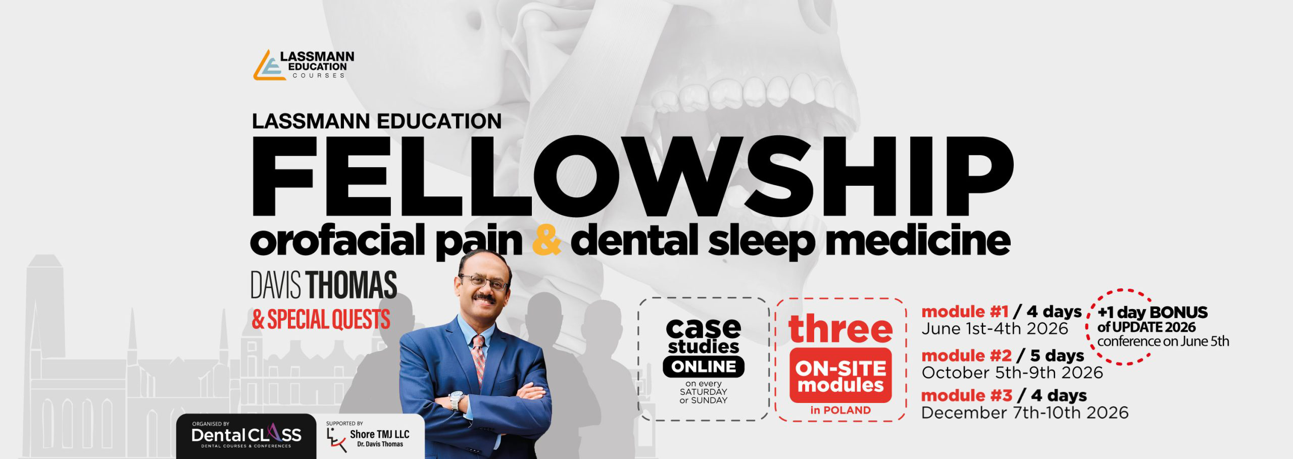 Prowadzącym kursu jest Dr Davis Thomas, uznany międzynarodowo oraz ceniony autorytet w dziedzinie bólu orofacjalnego. Jest dyplomatą American Board of Orofacial Pain oraz autorem licznych publikacji z zakresu zaburzeń snu i bólu. Posiada ponad 20 lat doświadczenia w leczeniu złożonych przypadków bólu orofacjalnego, TMD oraz zaburzeń snu. Uczestnicy kursu będą mieli możliwość obserwowania oraz aktywnego udziału w rzeczywistych przypadkach klinicznych OFP, a także uczenia się od innych wiodących ekspertów w tej dziedzinie.